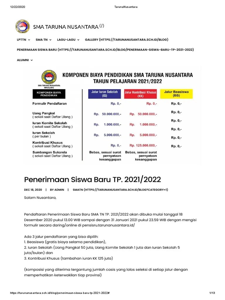 Pendaftaran Sma Taruna Nusantara Magelang 2021/2022 - 1 - Magelang pensisru.tarunanusantara.id joined february 2020.